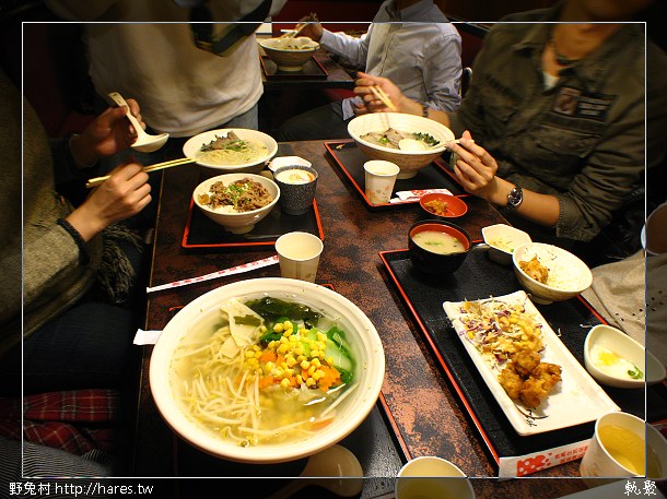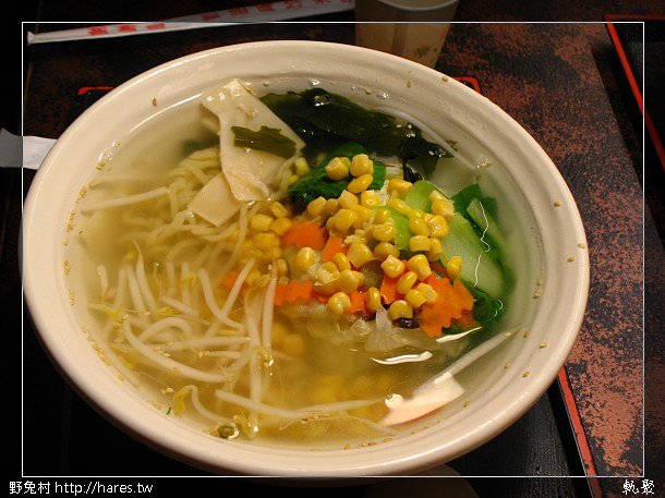 #09 旁邊桌吃的,天仙吃的蔬菜麵超清的,湯清可見底,可是有一個人足足吃完了野兔點的套餐份量,就是桌面左上角那盤啦!