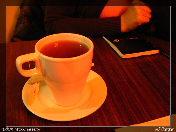 我坐在窗邊,那邊有紅色的迷紅燈,店內又有不同的光源,一整個混亂XD~~