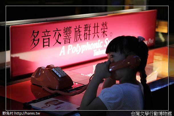 #10 小妹妹很仔細聆聽電話的另一頭的聲音,台灣文學館最有趣的地方就是互動式的展覽,讓枯燥的文學變得更有趣了