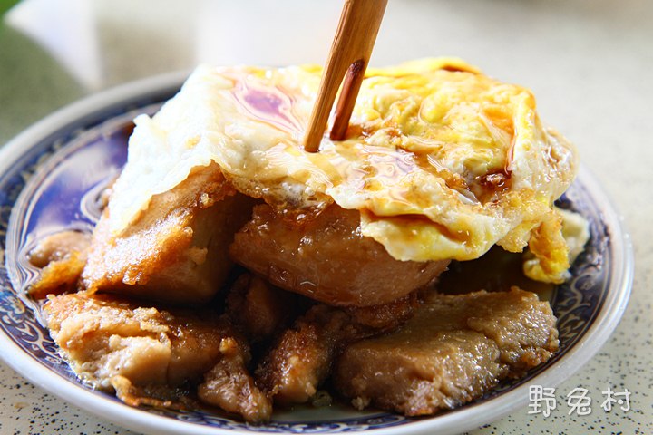 #05 回頭再來看看主角「煎粿」,上頭壓著荷包蛋,好像有醍醐灌頂的作用,讓口水多流了好幾滴